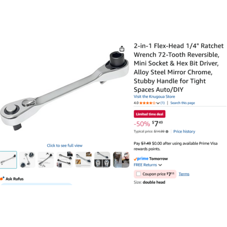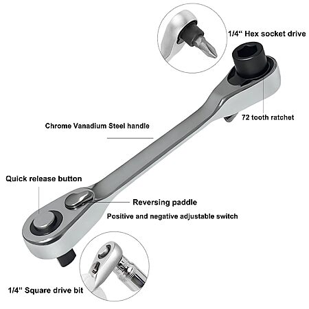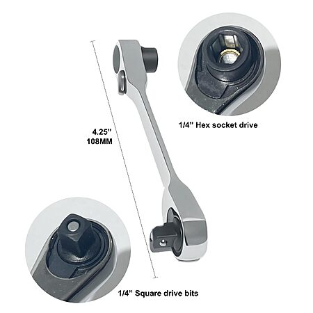 Knugoua 2-in-1 Flex-Head 1/4" Ratchet Wrench 72-Tooth Reversible, Mini Socket & Hex Bit Driver. YMMV - Coupon Price $7.11