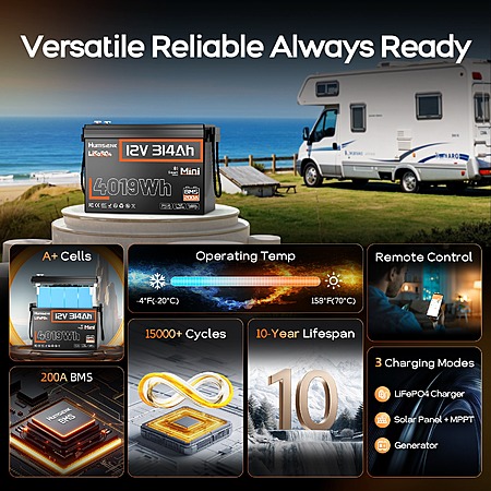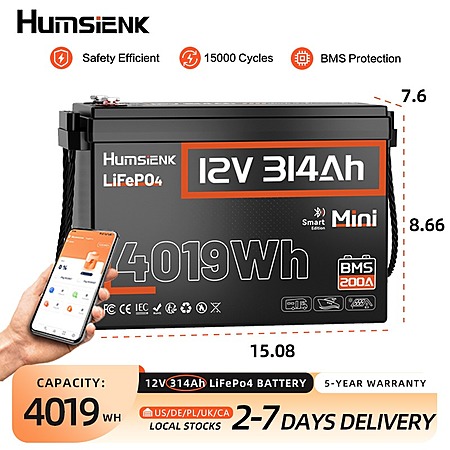 Humsienk 12V 314Ah LiFePO4 Battery 4019Wh 200A BMS Upgraded Version $222 + Free Shipping