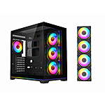 DIYPC ARGB-DC200-BK is a panoramic ATX case w/2 x tempered glass with a 270° full view of your masterpiece for building high-performance system. It has front and side tempered glass panel, w/top mesh design allow optimized air flow. The case's design has bigger interior space to accommodate and improve cooling performance (can support up to 400mm x GPU and 360mm