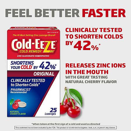 25-Count Cold-EEZE Cold Remedy Zinc Lozenges (Natural Cherry) $5.24 w/ S&S + Free Shipping w/ Prime or on $35+