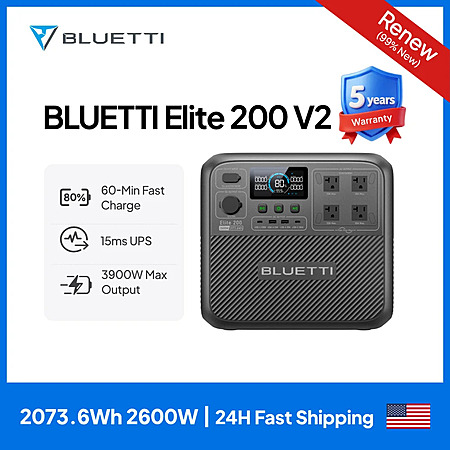 (renewed w/ 5 yr warranty) 2073.6W BLUETTI Elite 200 V2 2600W LiFePO4 Power Station $606 + Free S/H