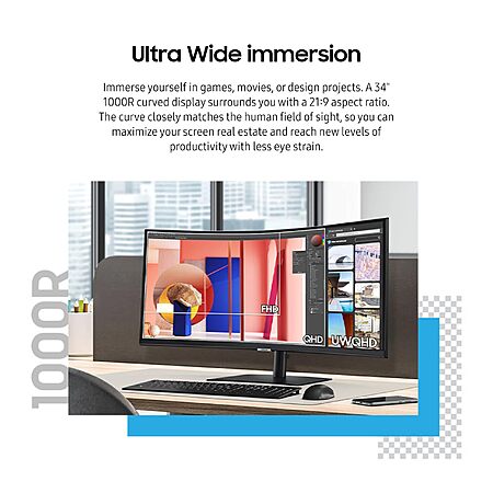 [SELECT ACCOUNTS] 34" ViewFinity S65VC UWQHD 100Hz FreeSync HDR10 VA Curved Monitor w/ USB-C, Speakers, KVM Switch & Built-In Camera $301 + Free Shipping