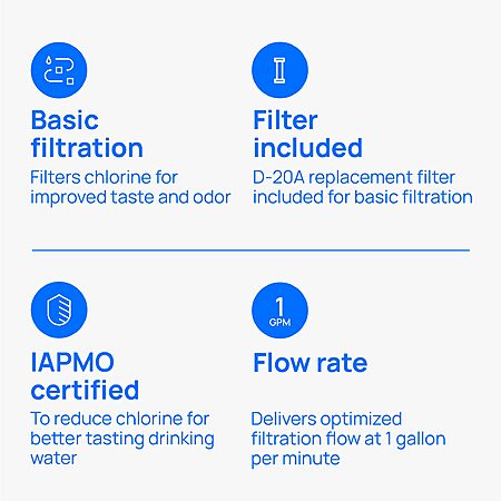 - EFFECTIVE CHLORINE REDUCTION: Reduces chlorine taste & odor with included D-20A cartridge for cleaner, better-tasting water from your tap and for cooking.