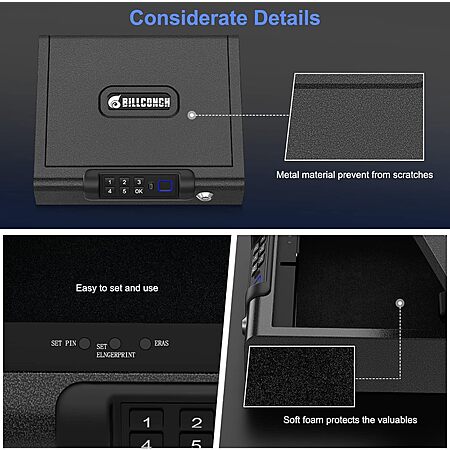 Billconch Smart Safe Box w/ 3-Way Fingerprint, Keypad & Key Lock (8.6" x 10") $41.99 + Free Shipping