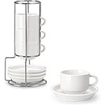 Prime: 4-ct MALACASA 2.5-oz Porcelain Stackable Cups & Saucers Set w/ Metal Stand