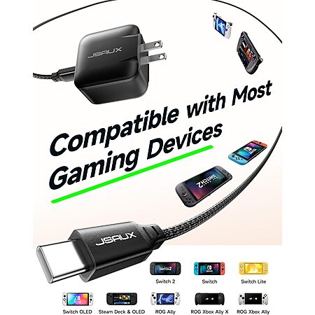 JSAUX 65W USB C Charger for Nintendo Switch 2, Powers in TV Mode, with EU/UK Plug & 6.6FT Cable, GaN PD Fast Charge for ROG Xbox Ally, Steam Deck, ROG Ally, iPhone 17 $19.98 Amazon