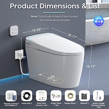 Glendan Smart Toilet w/ Auto Flush, Heated Seat $237 @ Amazon