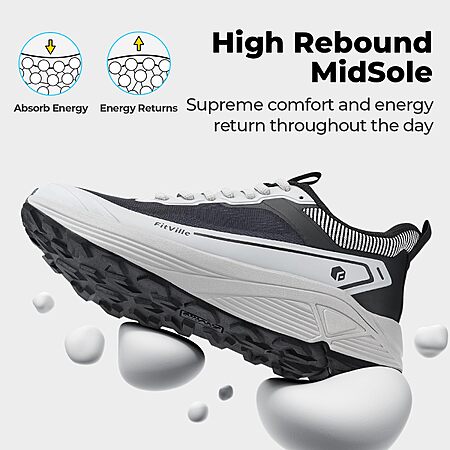 The FitVille Wide Walking Shoes for Men are designed with comfort and stability in mind, featuring a roomy toe box and wide-fit construction suitable for broader feet. The cushioned midsole and built-in arch support aim to provide all-day comfort for walking, light trail use, or casual athletic wear. An anti-slip outsole helps improve traction on various surfaces, while the lightweight design keeps them suitable for extended wear. Overall, they're a practical option for those looking for supportive, comfort-oriented sneakers with a wider fit.