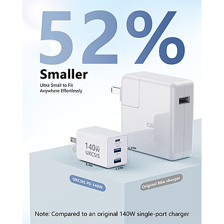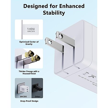 2-Pack UKCSIS up to 140W 3-Port GaN Foldable Wall Charger (USB-C, 2x USB-A) $18.99 + Free Shipping w/ Prime or on $35+