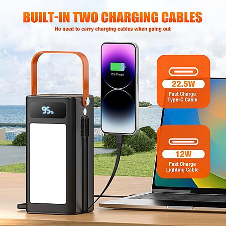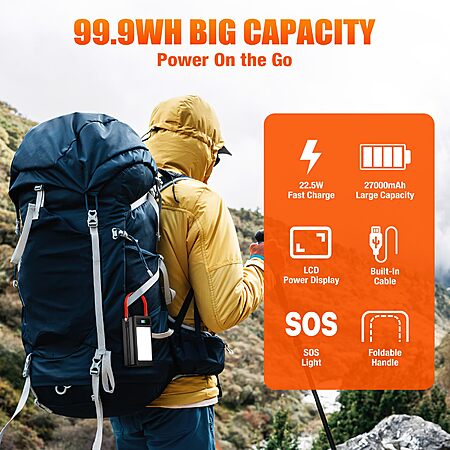 99Wh (27,000mAh) Portable Power Bank w/ 22.5W PD, 7 Outputs, Built-In Cables, Flashlight & LCD Screen $21.49 + Free Shipping w/ Prime or on $35+