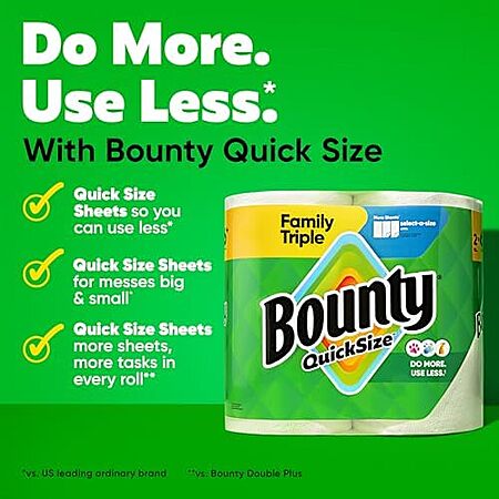 [SnS, AC] $34.39 | 12-Pack 141-Sheets Bounty Quick-Size Paper Towels Family Triple Rolls at Amazon ($2.87 each)