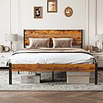 Model: Sweetcrispy Queen Size Bed Frame with Headboard, 800LBS Mattress Foundation with All Sturdy Metal Support, Under Bed Storage, No Box Spring Needed, Easy Assembly, Rust Brown