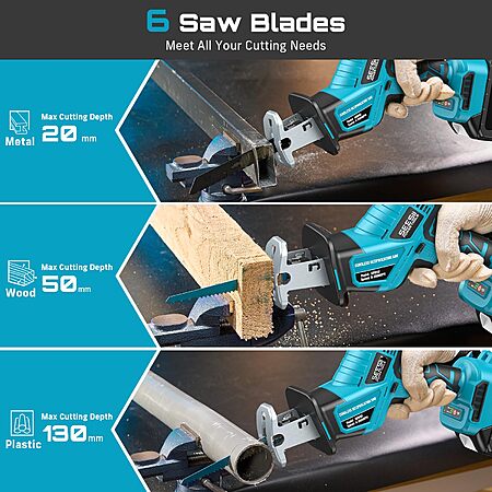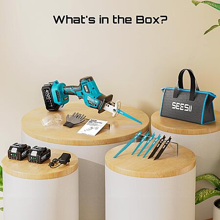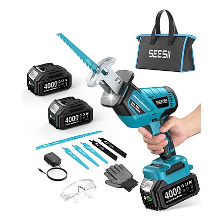 SEESII Reciprocating Saw Brushless w/2 x 4.0Ah Batteries, charger and 6 blades $57