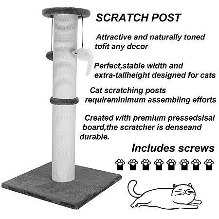 Cat Scratching Post 33.8inch Cotton Rope with Hanging Ball and Mice (Grey) $29.71