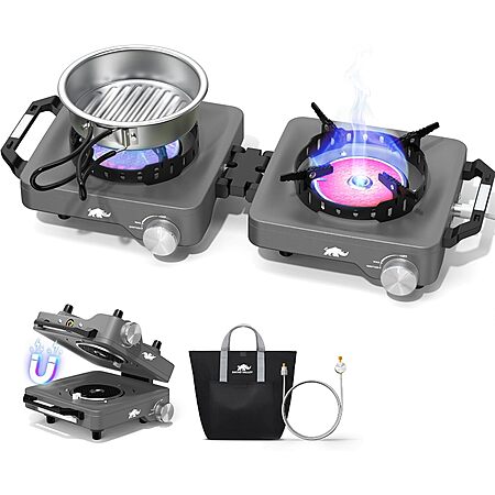 2-Burner 30,000 BTU Rhino Valley Propane Folding Camp Stove w/ Wind Grates, Frying Pan and Carry Case from $55.91 + Free Shipping