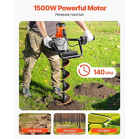 Amazon.com has VEVOR Electric Post Hole Digger, 5.71 in Auger Bit with 1500W Powerful Motor, 140 RPM Alloy Steel Earth Auger Drill Bit with 10.24 in Extension Rod, for Post Hole Digging, Drilling & Tree Planting on sale for $111. Shipping is free.