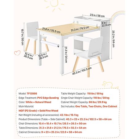 Suplander via Amazon[amazon.com] has Vevor Kids' Art Table and Chair Set w/ 3 Tier Storage Cabinet on sale for $99.90 - $5.00 when you 'clip' Product Page Coupon - an additional $24.98 = $69.92 when you apply code M8NO2APY at checkout. Shipping is free.