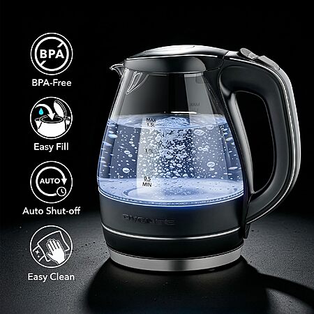 1.5L Ovente Borosilicate Glass Electric Kettle w/ Auto Shut-Off, Boil-Dry Protection and Removable Spout Filter (Black) $15.15 + Free Shipping w/ Prime or on $35+