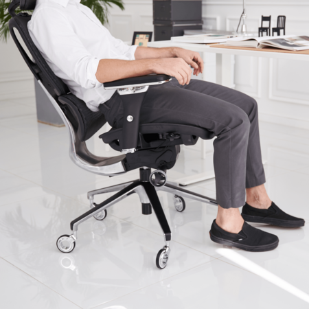- 4D armrests adjust: up/down, forward/back, side-to-side, and pivot left/right