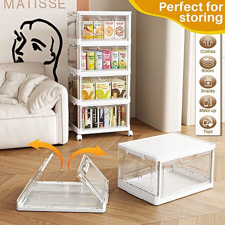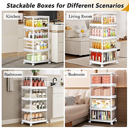 LINYU-US via Amazon has 4-Tier 24-Quart Clear Plastic Storage Bins w/ Lid & Wheels for $28. Shipping is free w/ Prime or on $35+.