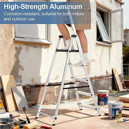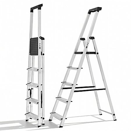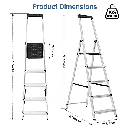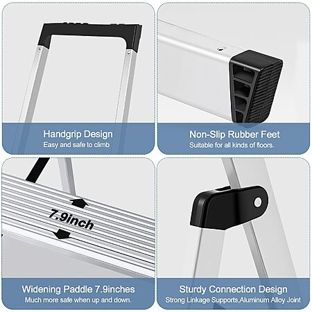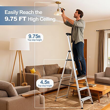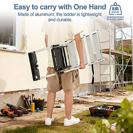 $59.99*:OLIXIS 5-Step Ladder, 330lbs Folding Aluminum Stool with Anti-Slip Pedals & Handrails, Safety Ladder for Home & Outdoor at Amazon