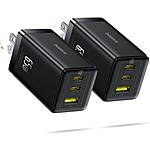2-Pack Baseus 3-Port 65W USB-C Foldable Wall Charger Blocks