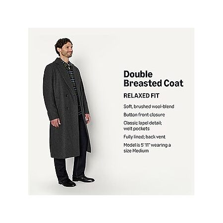 Amazon Essentials Mens RelaxedFit Double Breasted Wool Blend Longline Topcoat (3 Colors) $24.99 + Free Shipping w/ Prime