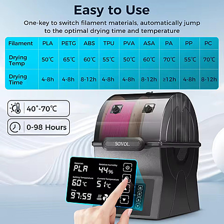 Sovol Store via AliExpress [aliexpress.us] has Sovol SH02 Dual Spool Filament Dryer on sale for $49.53 - $7 off when you apply promo code USAFF7 at checkout = $42.53. Shipping is free.