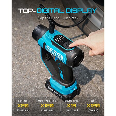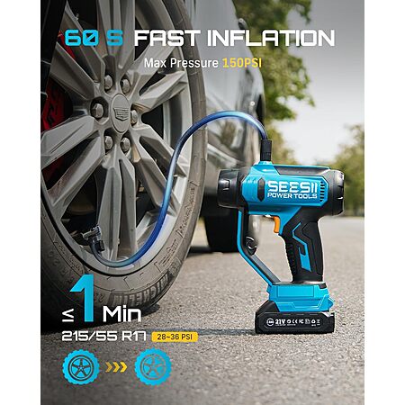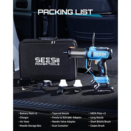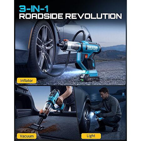 Prime: SEESII 3-in-1 Portable 150PSI Air Compressor, Car Vacuum Cleaner & Searchlight w/ 2x 2.0Ah Batteries, Charger, 2x HEPA Filters & Accessories $45.49 + Free Shipping