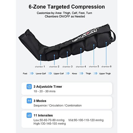 Prime: CINCOM Air Compression Recovery System 6-Zone Professional Dynamic Pressure Leg Massager Boots $139.97