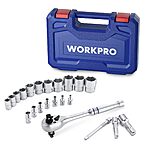 Model: WORKPRO 22-Piece Socket Set with 3-in-1 Ratchet Handle, 1/4, 3/8, 1/2 Inch Drive Socket Wrench, CR-V Metric Socket Set, Extension Bars, Storage Box Included, Mechanics Tool Sets for Auto Repairing