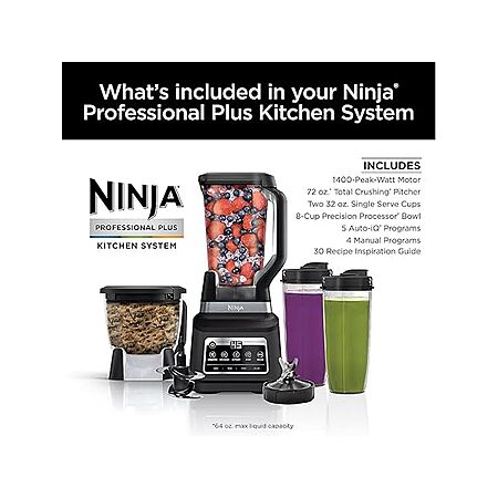 Ninja Pro Plus 5-in-1 Auto IQ Kitchen System w/ 72oz Blender Pitcher & 64oz Processor Bowl (Black) $143.99 + Free Shipping w/ Prime