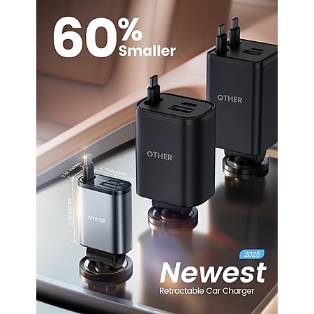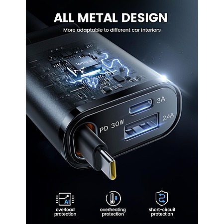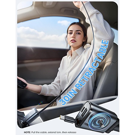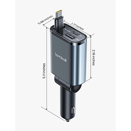 Lamicall Car Charger w/ 30W Retractable USB-C up to 57W Total Output (Gray) $10 + Free Shipping w/ Prime or $35+ Orders