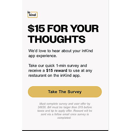 inKind $15 reward for survey (YMMV)