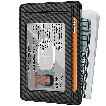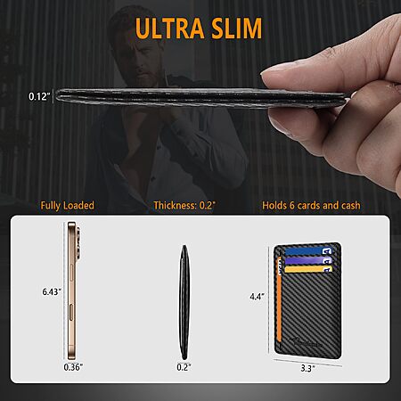 Model: Travelambo Front Pocket Minimalist Leather Slim Wallet RFID Blocking Carbon Fiber Texture(Black)