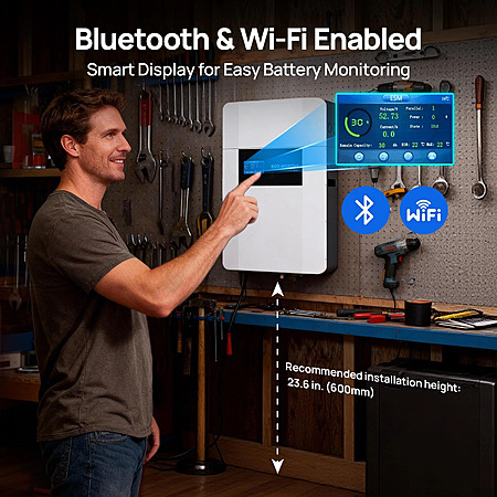- Easy to Monitor and Control: Featuring a 4.3-inch smart display with Bluetooth and Wi-Fi connectivity, allowing real-time monitoring of battery status through the screen or mobile app for effortless operation.