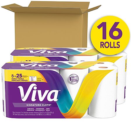 Viva Signature Cloth Paper Towels, 16 Triple Plus == 50 Reg Rolls, 141 Sheets per Roll $35.98 or less clip Q S&S