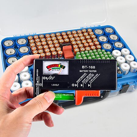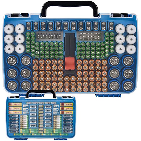 Double-Sided Battery Storage Organizer Case with BT-168 Tester, Holds 269, Fits AA AAA AAAA $14.49