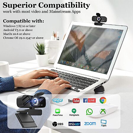 SZGIARUY 1080P HD Webcam for PC with Auto Focus & Noise Cancelling Mic - Plug and Play $9.99