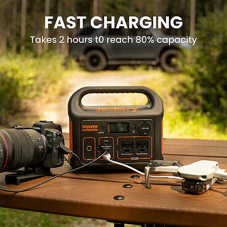 | Product Description: | Jackery Portable Power Station Explorer 300, 293Wh Backup Lithium Battery, 110V/300W Pure Sine Wave AC Outlet, Solar Generator (Solar Panel Not Included) for Outdoors Camping Travel Hunting Blackout. It takes only 2 hours to recharge 80% battery of the power station through the wall outlet and 60W PD USB-C port simultaneously. You can also recharge your power station with an AC adaptor when at home, through the car outlet during a road trip or simply use a Jackery Solar 100. Armed with a 293Wh lithium-ion battery pack, the Explorer 300 features 2 Pure Sine Wave AC outlets that deliver stable and safe 300W power. The portable power station weighs only 7.1 pounds. You can simply rest assured in outdoor off-grid activities. Featuring 2* AC outlet, 1* PD 60W USB-C port (input/output supported) , 1* fast charge 3.0 port, 1*USB-A port and 1* DC car port, the power station can recharge itself and charge (up to) 6 devices (e.g.Drones, Macbook, Cameras, etc.) at the same time to satisfy your outdoor needs. The power station is compatible with the Jackery SolarSaga 100 solar panel. The integrated MPPT controller enables the solar generator set to operate at its max power point, so that it speeds up the battery recharge, making them ideal portable power kits for tent camping, overland journey and etc. 1* Jackery Explorer 300 Portable Power Station , 1*AC adapter, 1* car charger cable, 1* user guide |