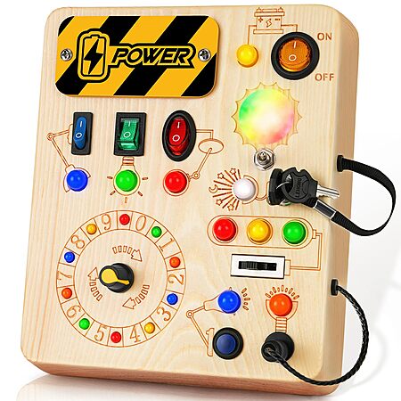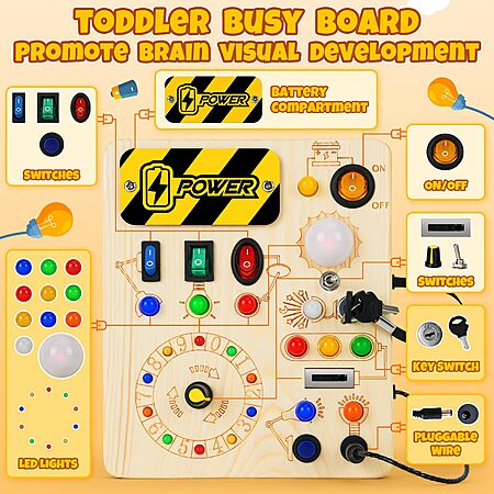 [Interactive Toddler Learning Board] This wooden busy board features multiple engaging switches and vibrant LED lights (requires 2 AAA batteries, not included) to spark curiosity. Designed without screens or noise, it encourages toddlers to explore everyday electronics safely while developing fine motor skills.