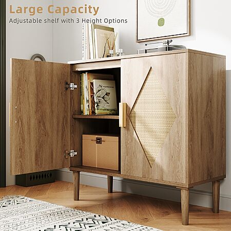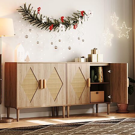 GarveeTech Modern Rattan Buffet Cabinet with 2 Doors - $71.99