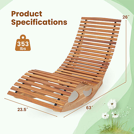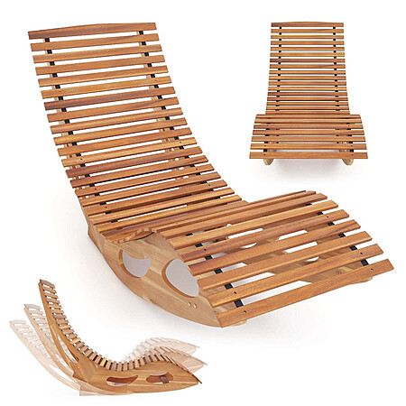 Daillysteals [dailysteals.com] has Costway Acacia Wood Outdoor Rocking Chaise Lounge (63" x 23.5" x 26") for $84.99. Shipping is free
