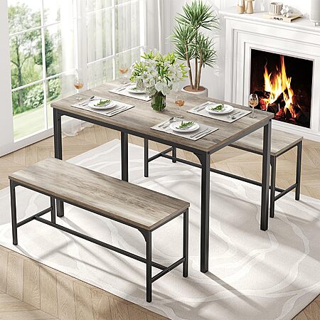 3-Piece DUMOS Dining Table Set for 4 (Grey) for