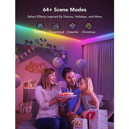 - Smart RGBIC Effects: Multiple colors flow on one strip at the same time, creating richer, more dynamic lighting than standard RGB.