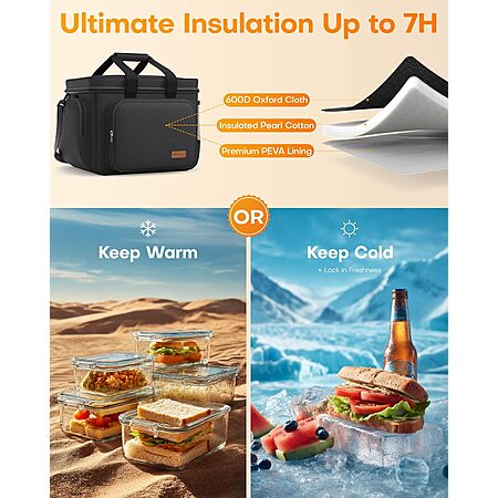 8L HOTOR Single Tier Insulated Lunch Box Bag w/ Strap (3 colors) $4.99, 18L (Black) $6.49, 25L (Black) $7.49 + Free Shipping w/ Prime or on $35+