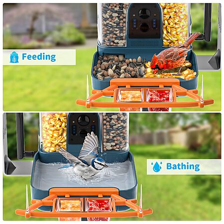 Navfs Dual-Lens Solar Powered Bird Feeder and Bird Bath w/ 2K HD Video with AI Identification, Instant Alerts and Camera $39.99 + Free Shipping