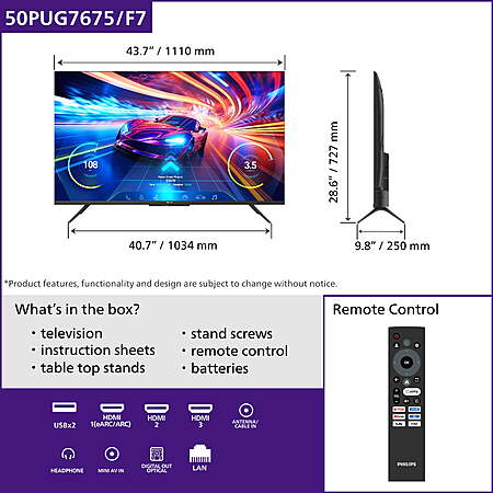 $258*:Philips 50" Class 144Hz QLED+ 4K UltraHD (2160p) Google + Gaming Smart TV (50PUG7675/F7) at Walmart.com