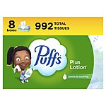 $11.30 Puffs Plus Lotion Facial Tissues, 8 Family Boxes, 124 Facial Tissues per Box with S&S