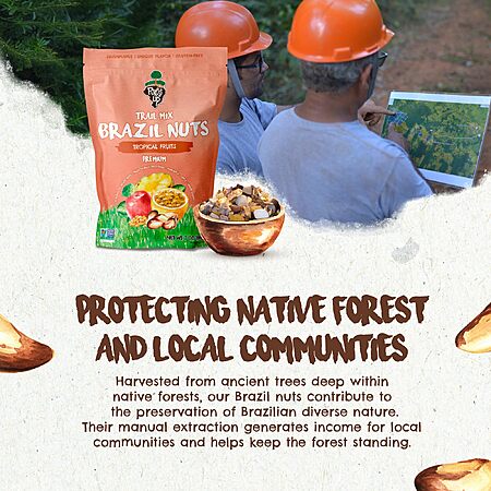 Model: Tropical Trail Mix (7oz) - The True Organic Brazil Nuts Roasted + Dried Apple + Dried White Raisins + Dried Pineapple + Passion Fruit Fruit Nibs | Nutrient-rich Combination | Non-Gmo | Fresh | Vegan | Gluten Free - Premium Snack Mix by Floresta em Pé